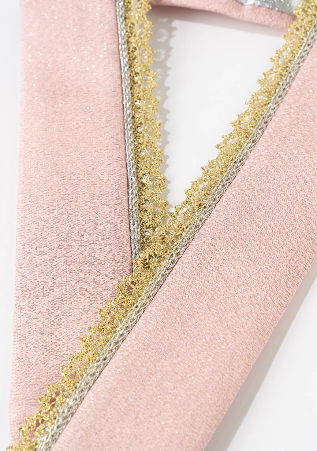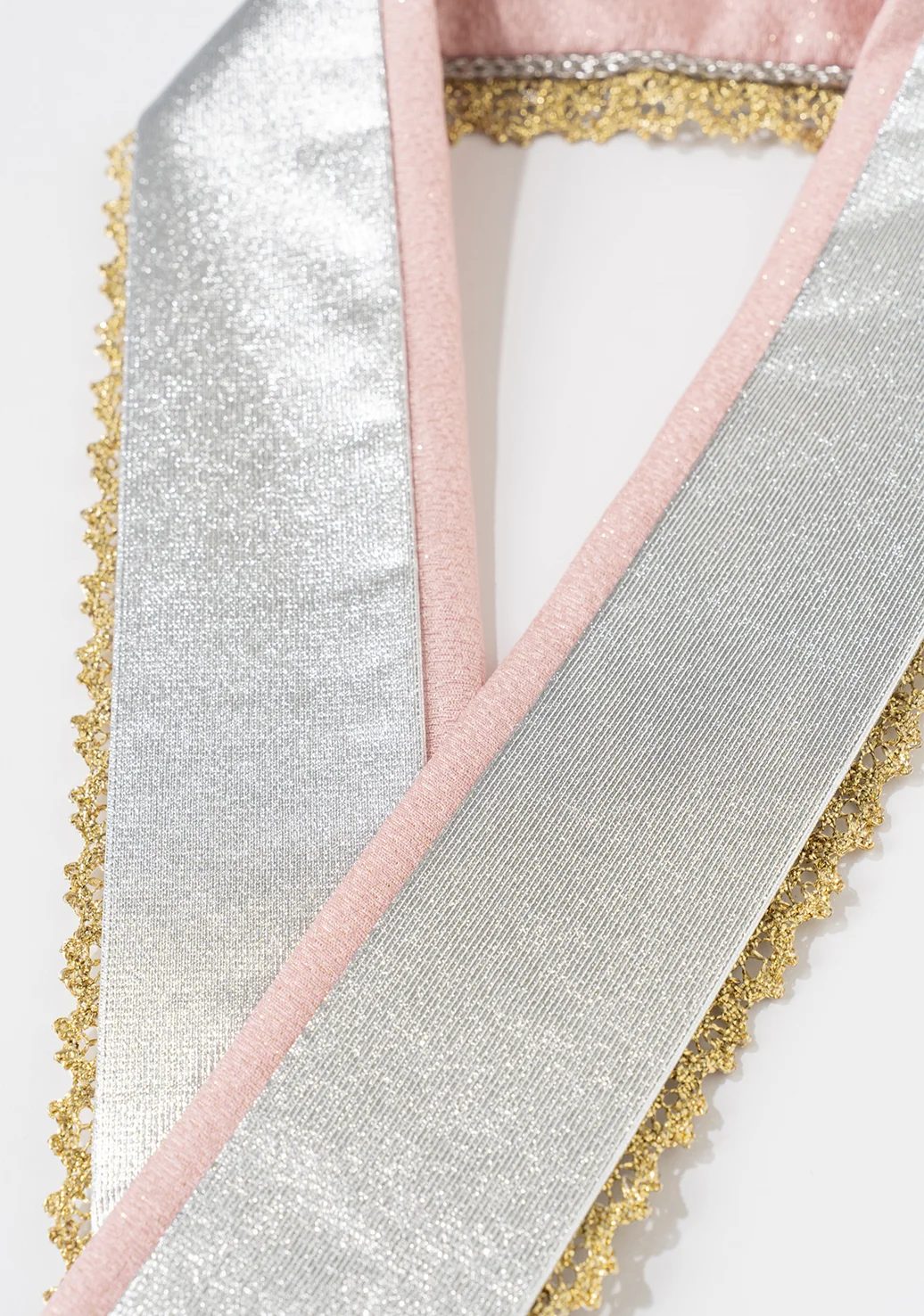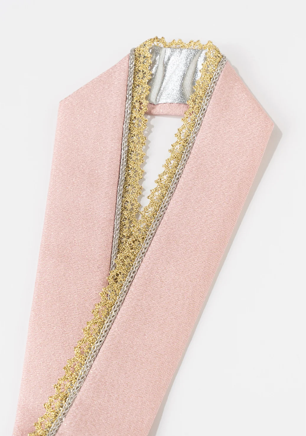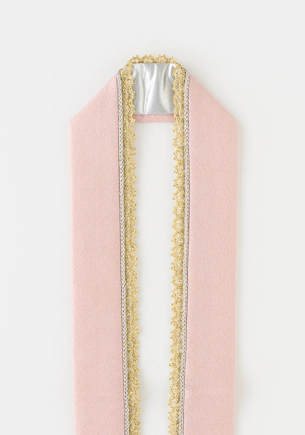 柔らかく華やかなカラーで、顔回りをパッと明るく彩ります。銀通しの生地に金・銀 2 種のレースを合わせて、上品な輝きを纏う重ね衿です。合わせやすい 3 色展開です。