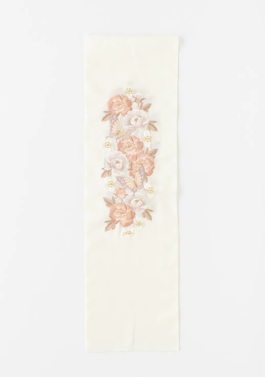 半衿/刺繍半衿/蝶ふわり芍薬/白